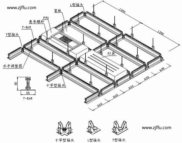模數尺寸(ceiling modular size):安裝吊頂龍骨中心線的間距,FFU常用的標準模數尺寸為1200X600(4’X2’),1200X900(4’X3’),1200X1200(4’X4’)。