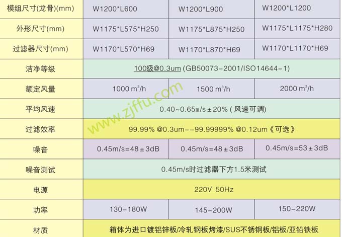 FFU風(fēng)量有多種,例如: