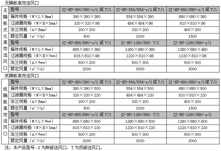 說明:高效過濾器分為有隔板高效過濾器、無隔板高效過濾器(常規型高效送風口專用!)